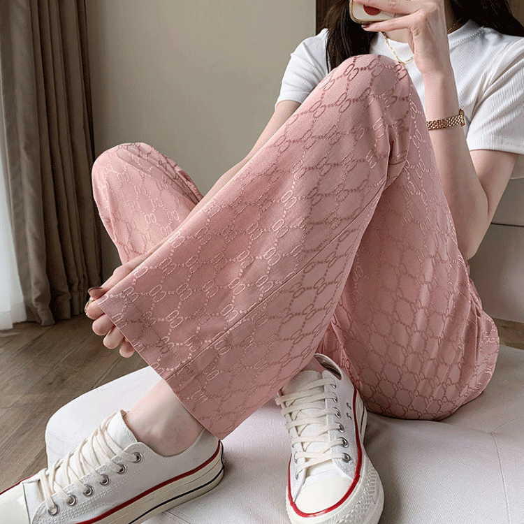 High-waist Ice Silk Pink Wide Leg Pants for Women
